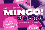 03/12/2026 to 04/02/2026 - Join us for Mingo Night, our version of Music Bingo, every Thursday from 6:00 PM to 8:00 PM at Windmill Creek.DJ Bobby spins the tracks while you match songs to your bingo card for a chance to win